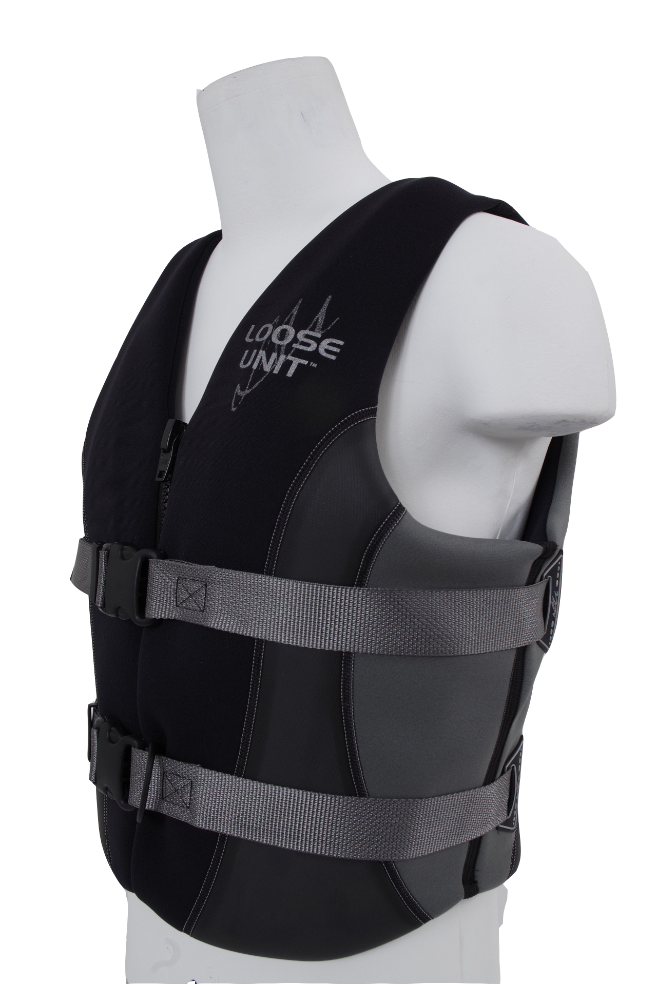 For wakeboarding, waterskiing, PWC it is a neoprene vest with PVC Nitrile foam and a front zip with 2 x 38mm belts with non slip buckles