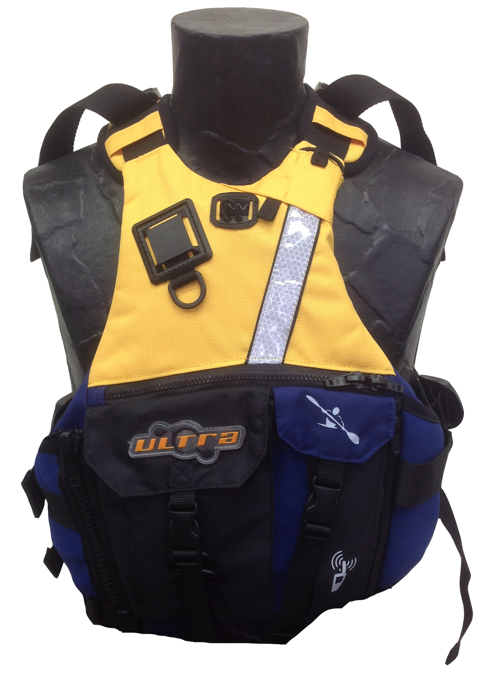 The Trek is the most advanced paddling vest on the market today. Whether you're into long distance paddling or a leisurely cruise, the expanding cargo pocket system with an EPIRB/GPS pocket will keep everything handy. The rear hydration pocket is also an expanding zipperless design and is insulated to help keep your refreshment cool. The neoprene shoulder design is adjustable allowing the whole unit to flex and move with you.