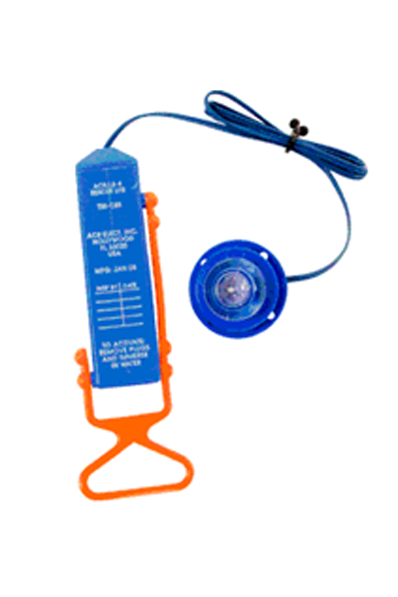 Product Specs: - Size: 3.1 x 1.8 x 1.6” (7.9 x 4.6 x 4.1 cm) - Weight: 1.8 oz (51g) - Battery Size: 3.7 x 1.0 x .42 in (9.4 x 2.6 x 1.0 cm) - Battery Life: Extended useful life with plugs left in place - Battery Type: Cuprous iodide/magnesium - Operational Life: Exceeds 8 hours - Material: High impact styrene - Activation: Pull tab, immerse in water to activate - Waterproof: 10 ft ( 3 m) - Beam Angle: Horizontal >2°, vertical >15° - Visibility: Lamp and lens combo produces brilliant light visible for over 1 mile (1.6 km) - Lamp: Incandescent - Certification: FAA TSO-C85, UK CAA - Limited Warranty: 1 Year