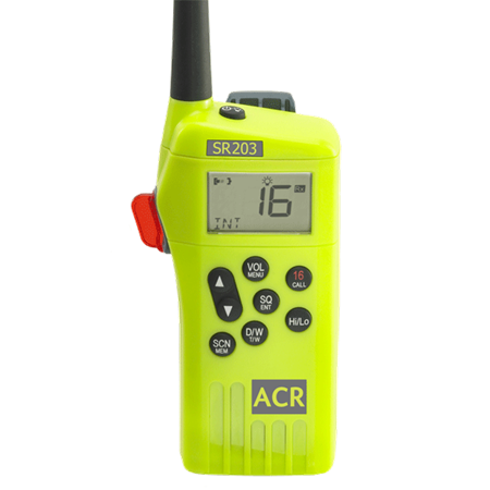 The all ACR SR203 GMDSS VHF Handheld Survival Radio meets all the requirements of the IMO for carriage on SOLAS vessels. Built tough for all marine applications and easy to use in an emergency situation, the SR203 is the ideal choice for mandatory and voluntary carriage. The SR203 handheld VHF radio boasts exceptional battery life of over 16 hours. FCC & MED Approved