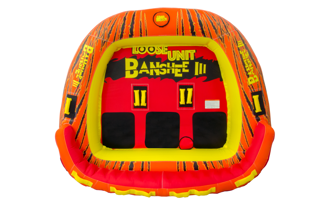 The new Banshee 3 tube is made for the whole family. Dual towing points make it so you can tow it in a couch position or simply reverse it, load it up with the kids & tow it Chariot style. The low centre of gravity and cockpit shape give young riders comfort and piece of mind. The Banshee 3 provides great value & comes complete with neoprene handles & knuckle guards for comfort, quick connect & boston valve for rapid inflation & deflation. Tow up to 3 riders with all the quality features that the Loose Unit name lives up to and enjoy family fun on the water!