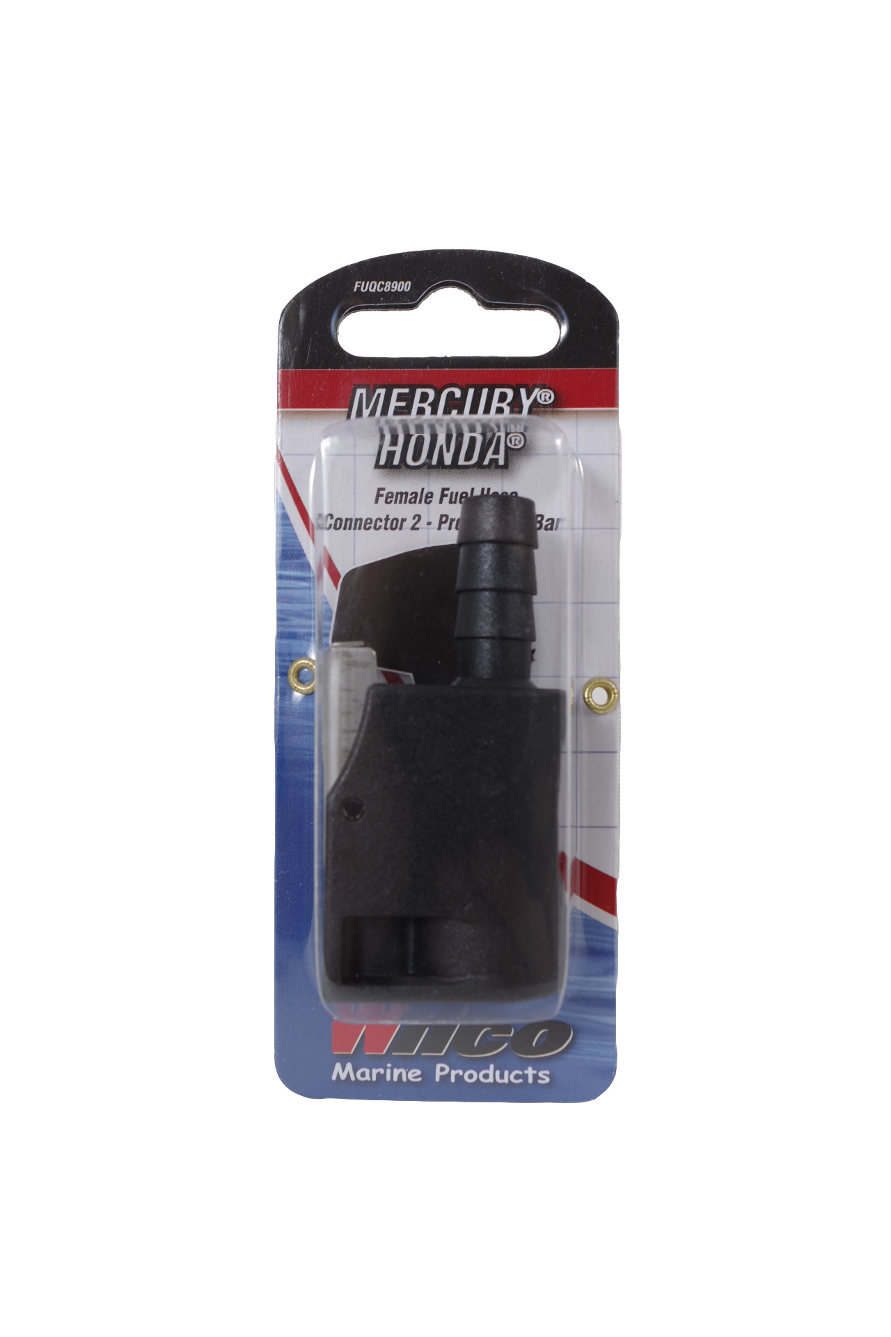 Quick-connect, a female fitting for use on both ends of fuel line to connect tank and motor.