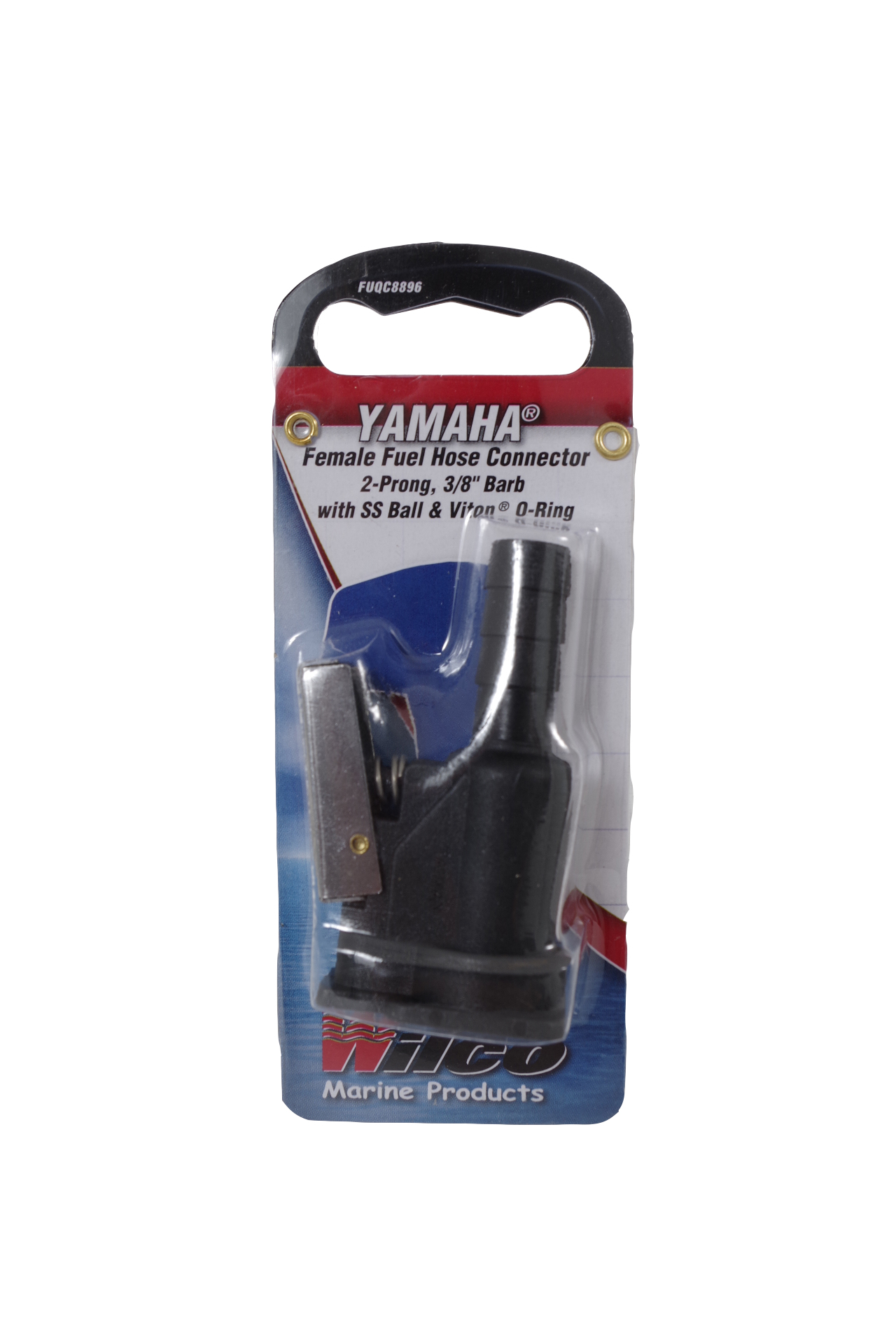 Hose fitting, 3/8" I.D. hose barb. It is rugged molded Acetal nylon construction and suitable for use with leaded, unleaded and alcohol-blended fuels. For use with part FUQC8897 or similar fittings. Note: Yamaha fuel fittings also fit select Mercury/Mariner brand engines.