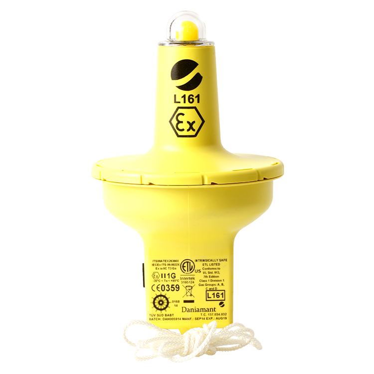 The L161 is fully approved to SOLAS/MED standards and also holds ATEX, IECEx and ETL listing under UL913. It is intrinsically safe (category 1) and as such is suitable for use in hazardous zones 0, 1 and 2. The L161 replaces the well established L40 Lifebuoy Light.