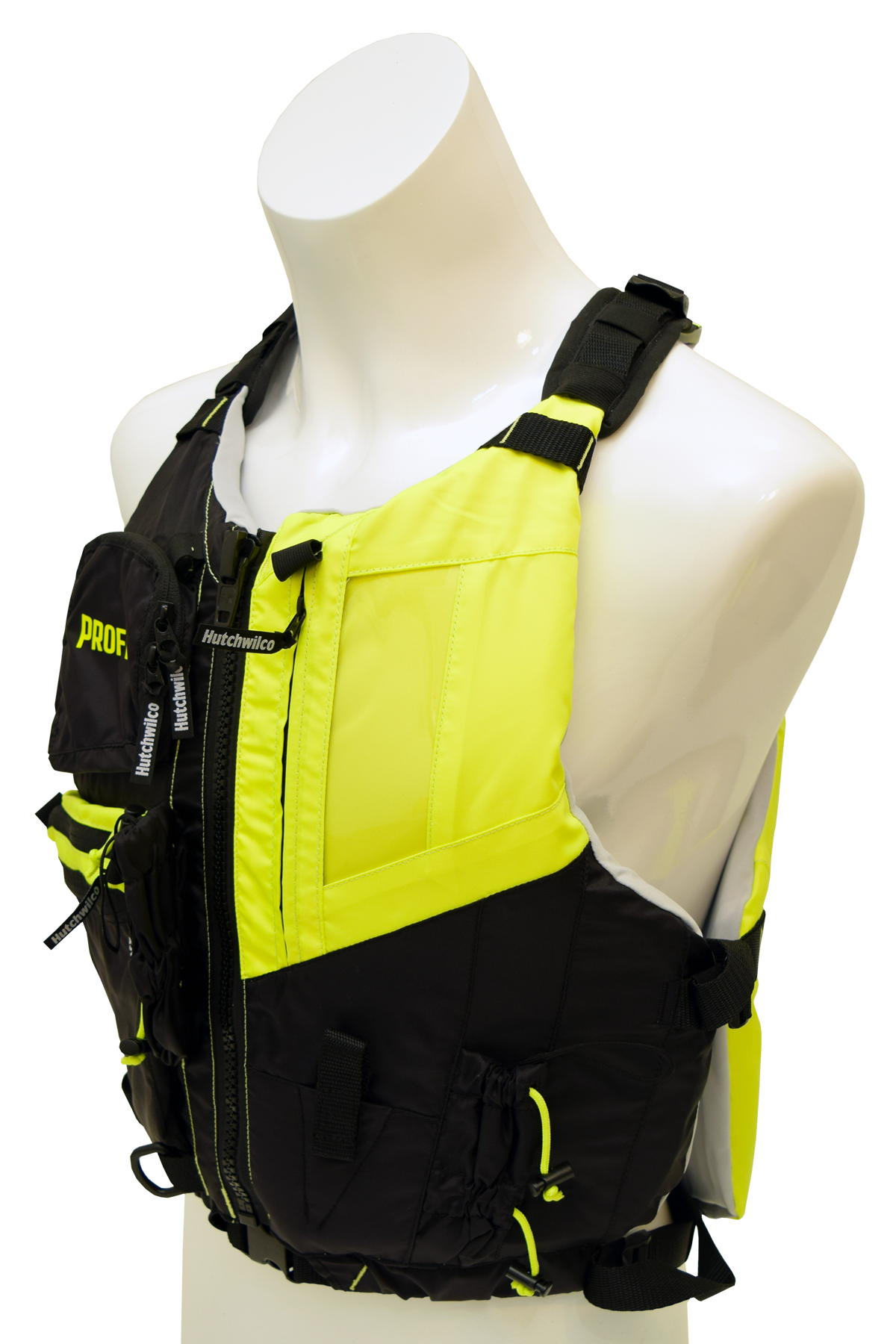 Introducing the Hutchwilco Profish Kayaking/Jet Ski PFD. Specially designed here in NZ with the serious kayak or Jetski angler, this PFD is a must when space is at a premium. Packed with a multitude of features such, gusseted pockets, PLB/Radio loops, multi-fit sizing, hydration bladder pocket, Clear Cell Phone pocket and in a Hi-Viz colourway for maximum vizability. Ergonomically designed with a tough nylon fabric outer and with our soft touch internal lining, this PFD is made to be worn for hours without discomfort while keeping you safe on the water.