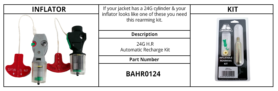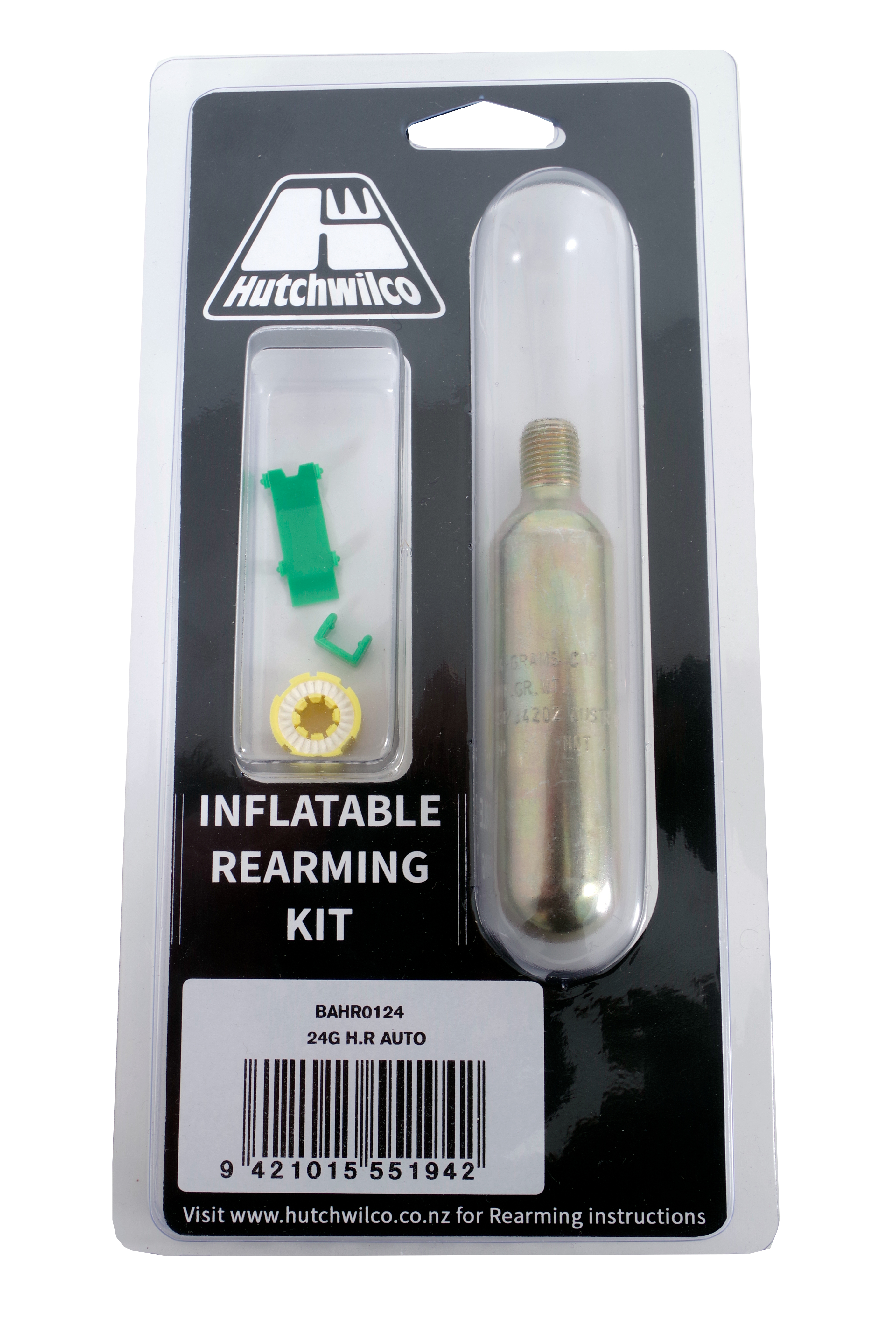 Rearming kit for the 100N Child Challenger. Contains: Co² Cylinder 24g, an Auto Release Bobbin, a Green Tamper Clip