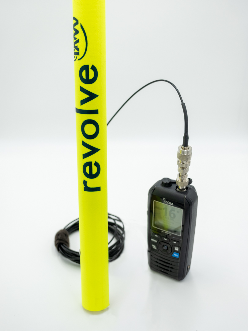 Storage Size – the Revolve Emergency VHF Antenna is constructed from an advanced patented rollable composite material from Rolatube and covered in a high-viz yellow material. Unrolled in seconds, it forms a 2.5m/100ins antenna weighing around 750g (1.65lb). To store it, roll it back up and it will fit into a space 11 x 13cm (4.3 x 5.1in) taking up minimal on-board storage space.
